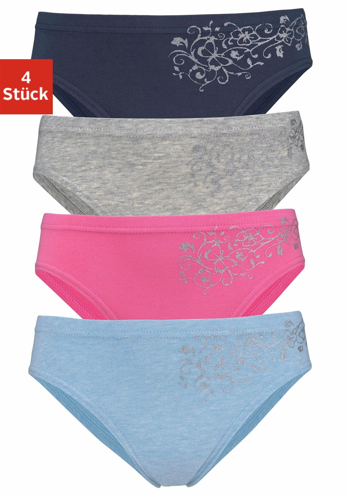 petite fleur Bikinislip Packung, 4 Stk. tlg., schöner Basic für jeden Tag, mit floralem Glitzerdruck